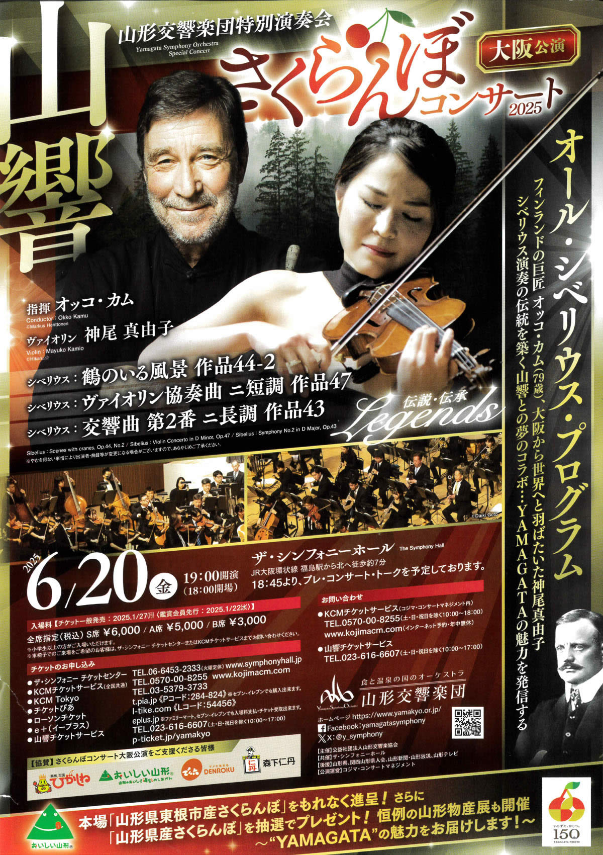 オッコ・カム(79歳)による オール・シベリウス・プログラム 大阪から世界へ羽ばたいた神尾 真由子、シベリウス演奏の伝統を築く山響との夢のコラボ… YAMAGATAの魅力を発信する |