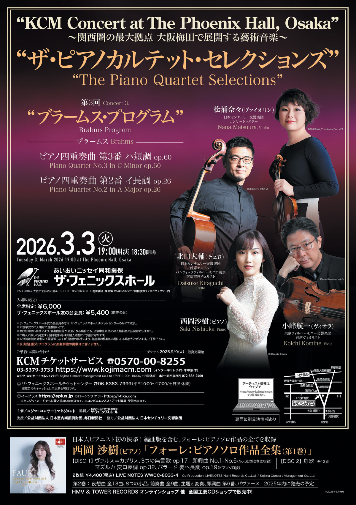 大阪・東京のオーケストラのトッププレイヤー達と「フォーレ:ピアノソロ作品全集」レコーディング完結という偉業を打ち立てた新鋭ピアニストによるコラボレーションにより、ピアノカルテットの魅力に迫るプロジェクト。