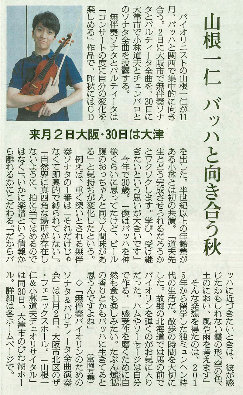 11月 東京・トッパンホール公演は完売! いよいよ関西でもJ.S.バッハの無伴奏ヴァイオリン作品のすべてを! |